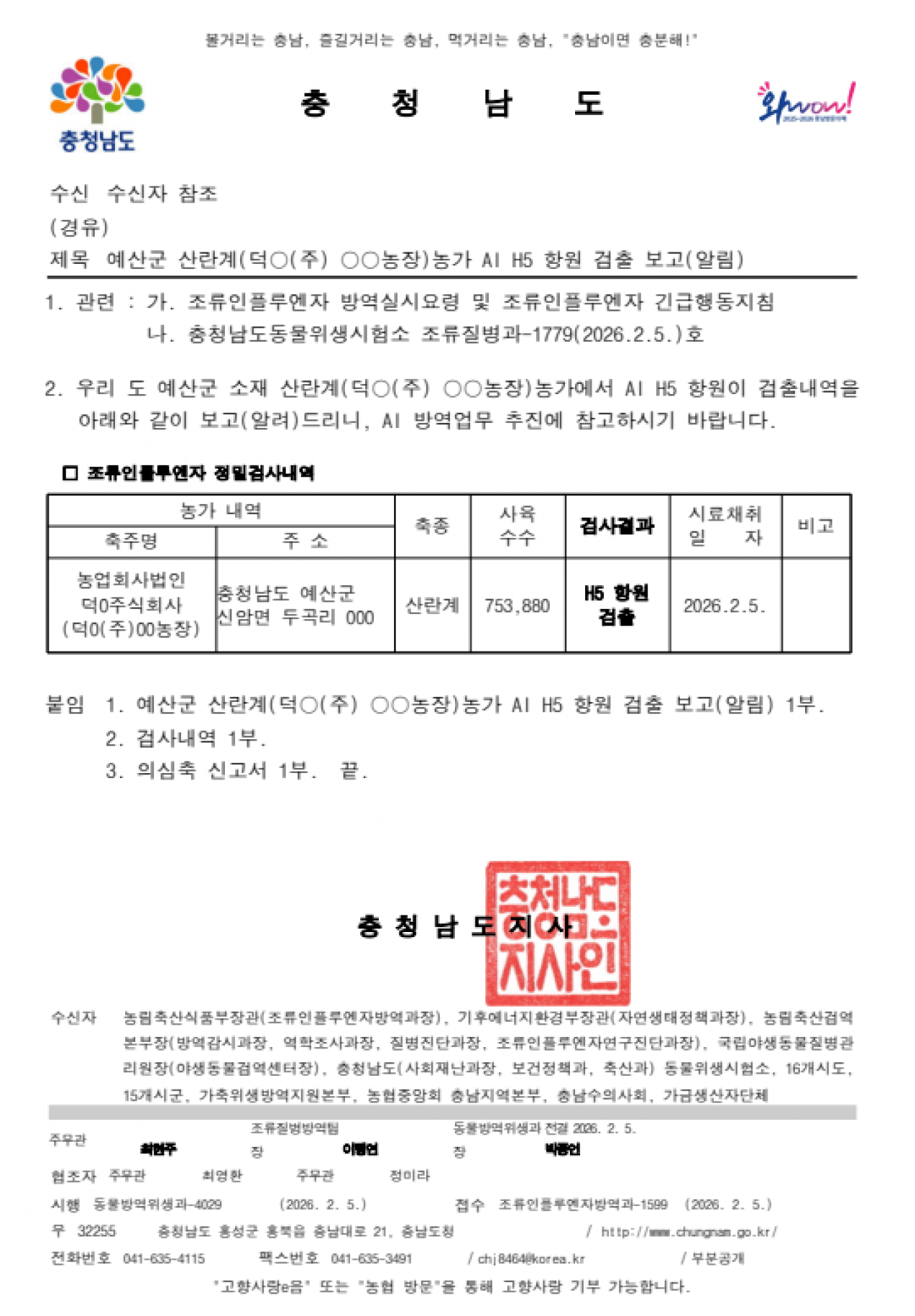 충남 예산 가금농장(산란계) 고병원성 AI 의사환축 발생에 따른 방역강화 조치 |