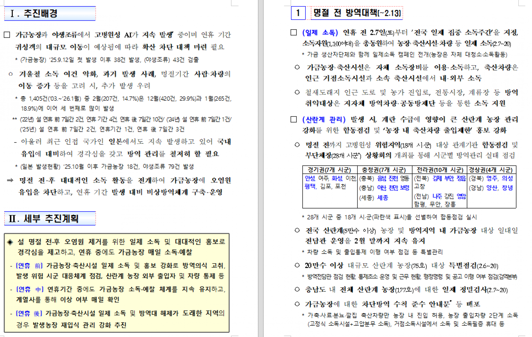 설 명절 대비 AI 방역 추진대책 알림