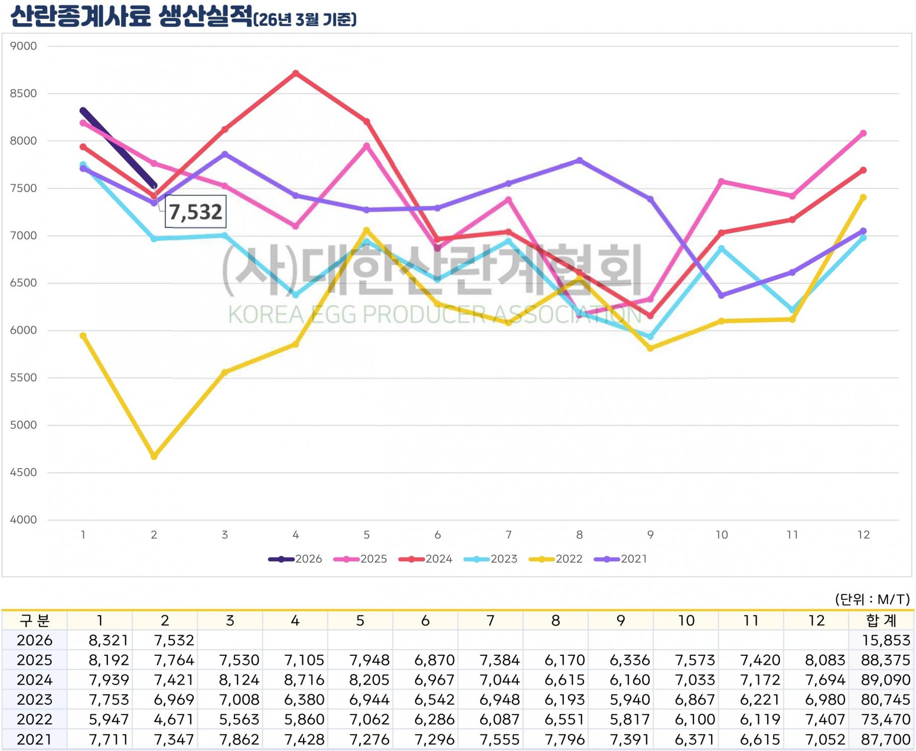 산란종계사료 생산실적
