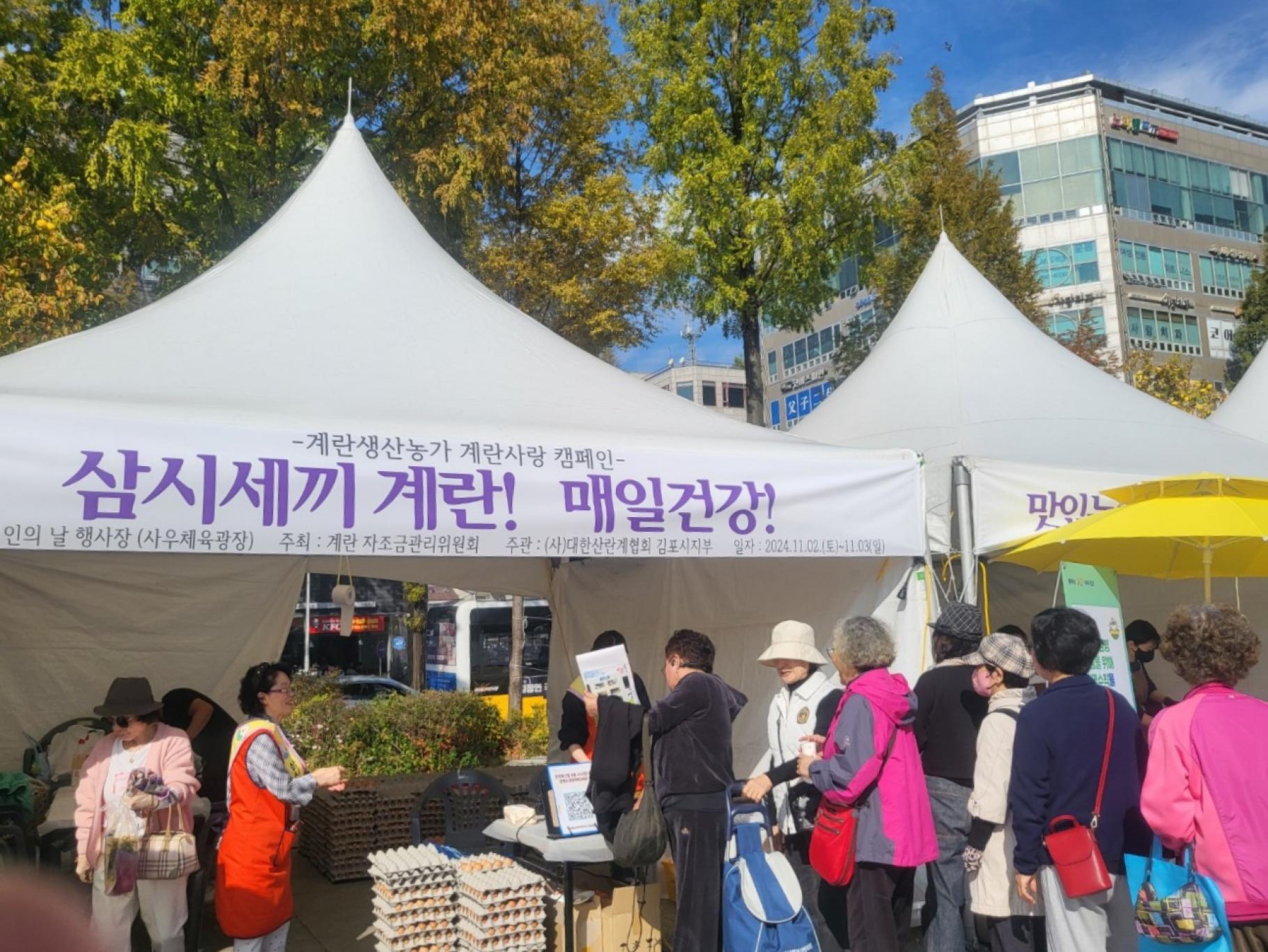 김포시지부는 경기 김포시 사우문화체육광장에서 지난 11월 2일 '제30회 농업인의 날 기념 김포농업대축제'에 참여하여 계란나눔행사를 진행하였다.
