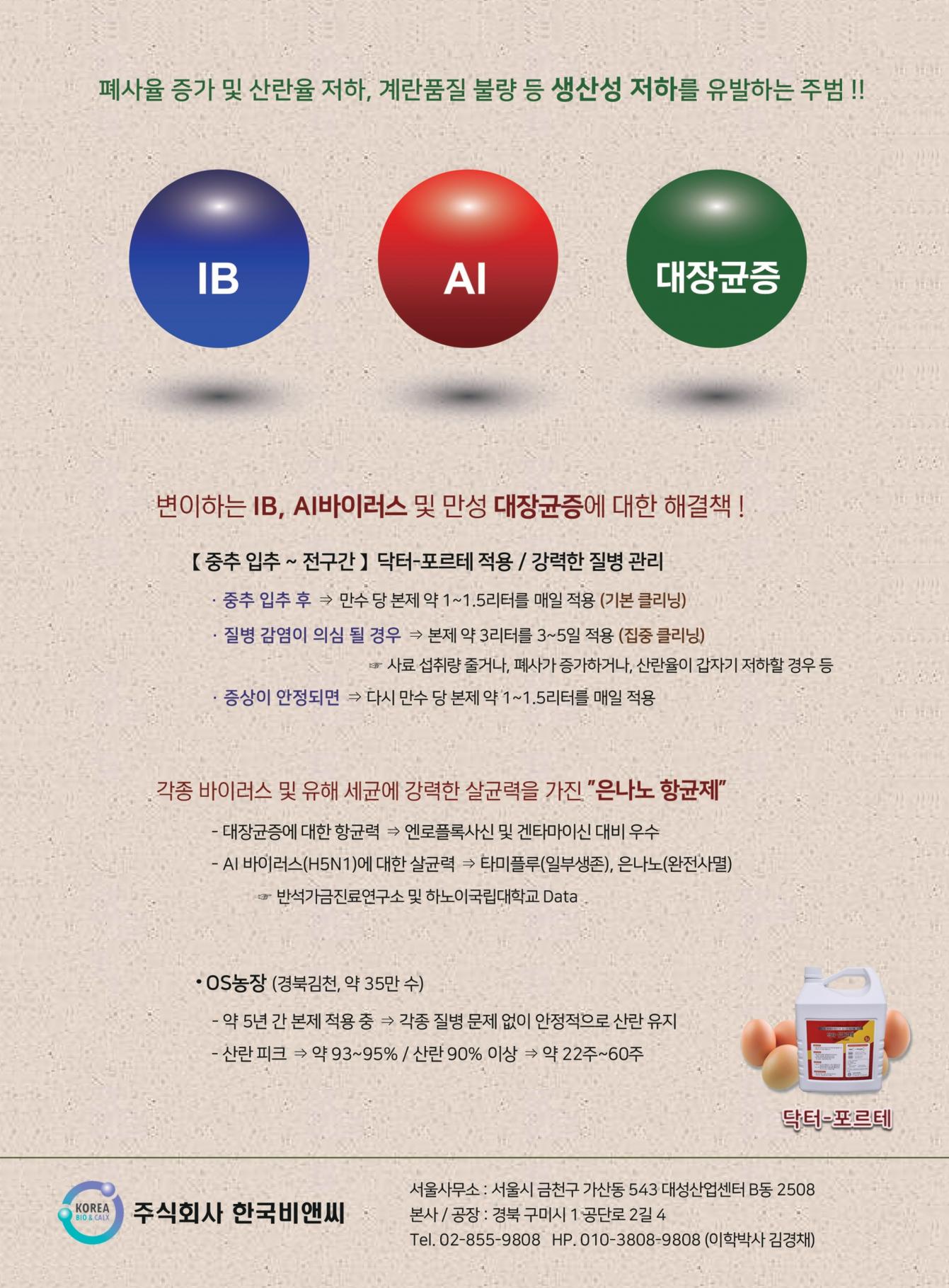 대한산란계협회 홈페이지 회원에게 무차별적으로 보내지는 메일을 차단하기 위해, 본 웹사이트에 게시된 이메일 주소가 전자우편 수집 프로그램이나 그 밖의 기술적 장치를 이용하여 무단으로 수집되는 것을 거부하며, 이를 위반시 정보통신망법에 의해 형사처벌됨을 유념하시기 바랍니다.