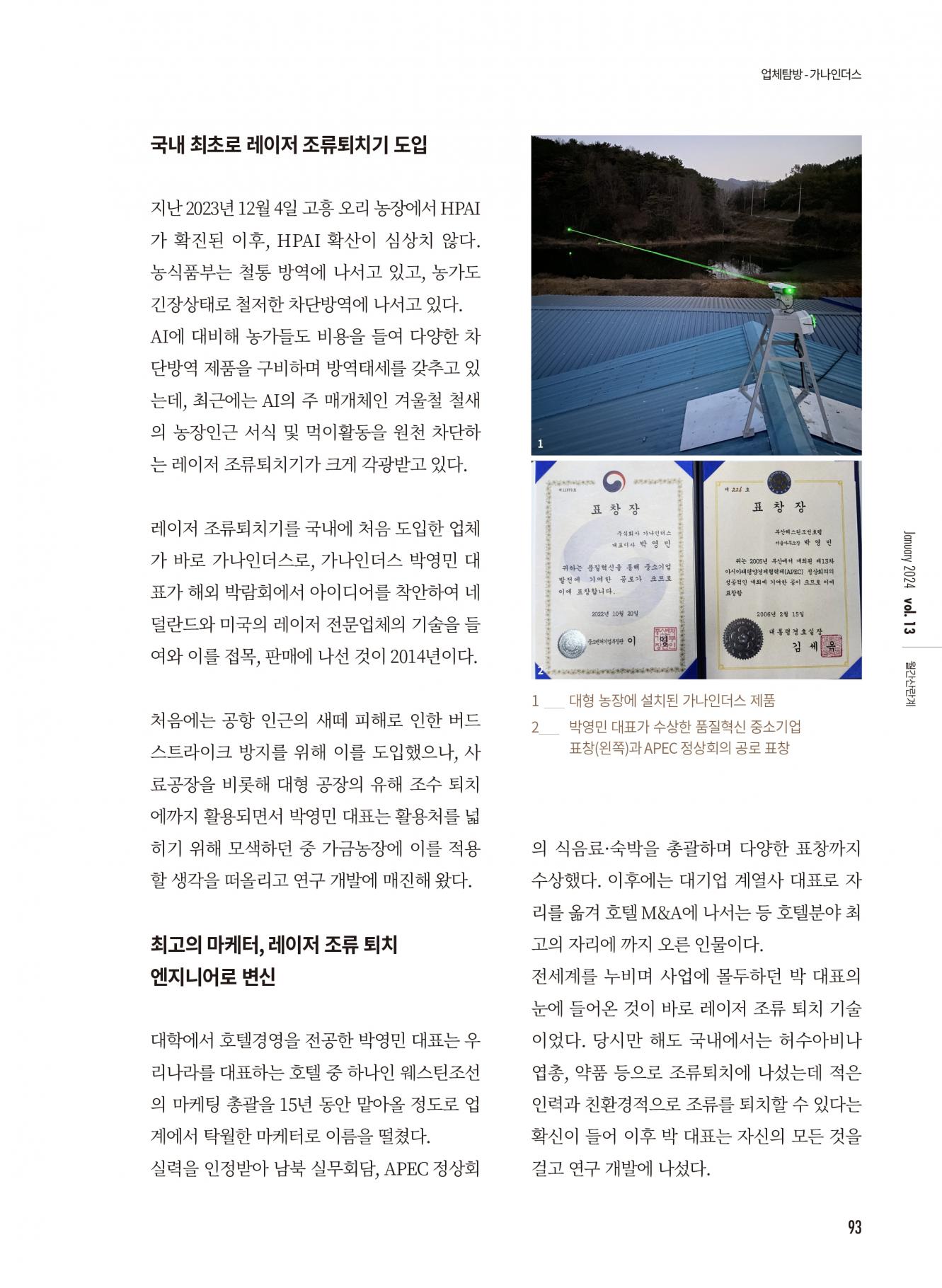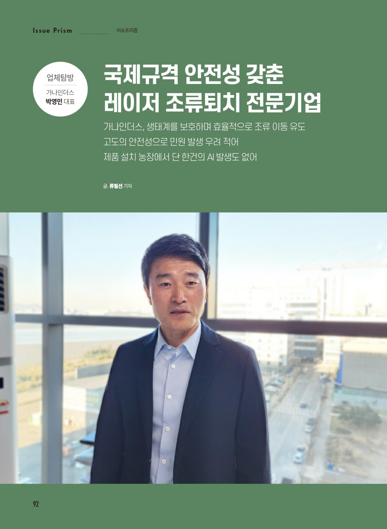 [업체탐방/가나인더스]국제규격 안전성 갖춘 레이저 조류퇴치 전문기업