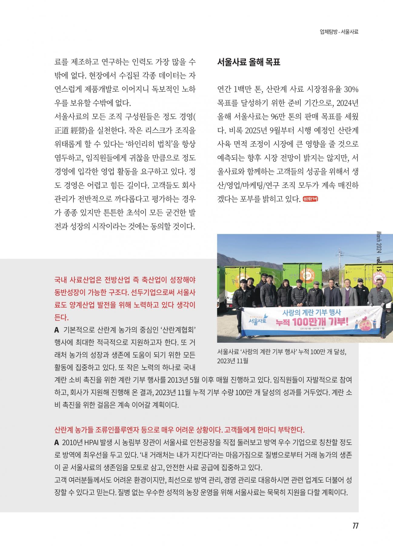 [업체탐방/서울사료]산란계 사료 분야 선도기업 서울사료