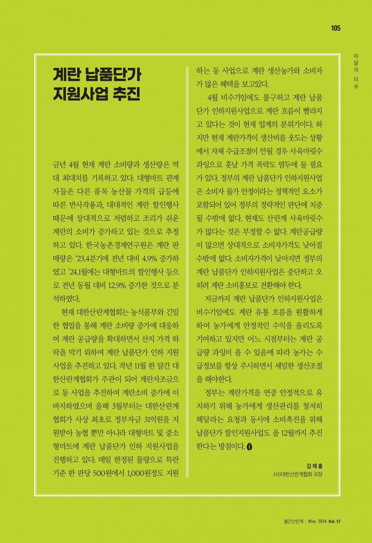 [이달의 이슈] 계란 납품단가 지원사업 추진