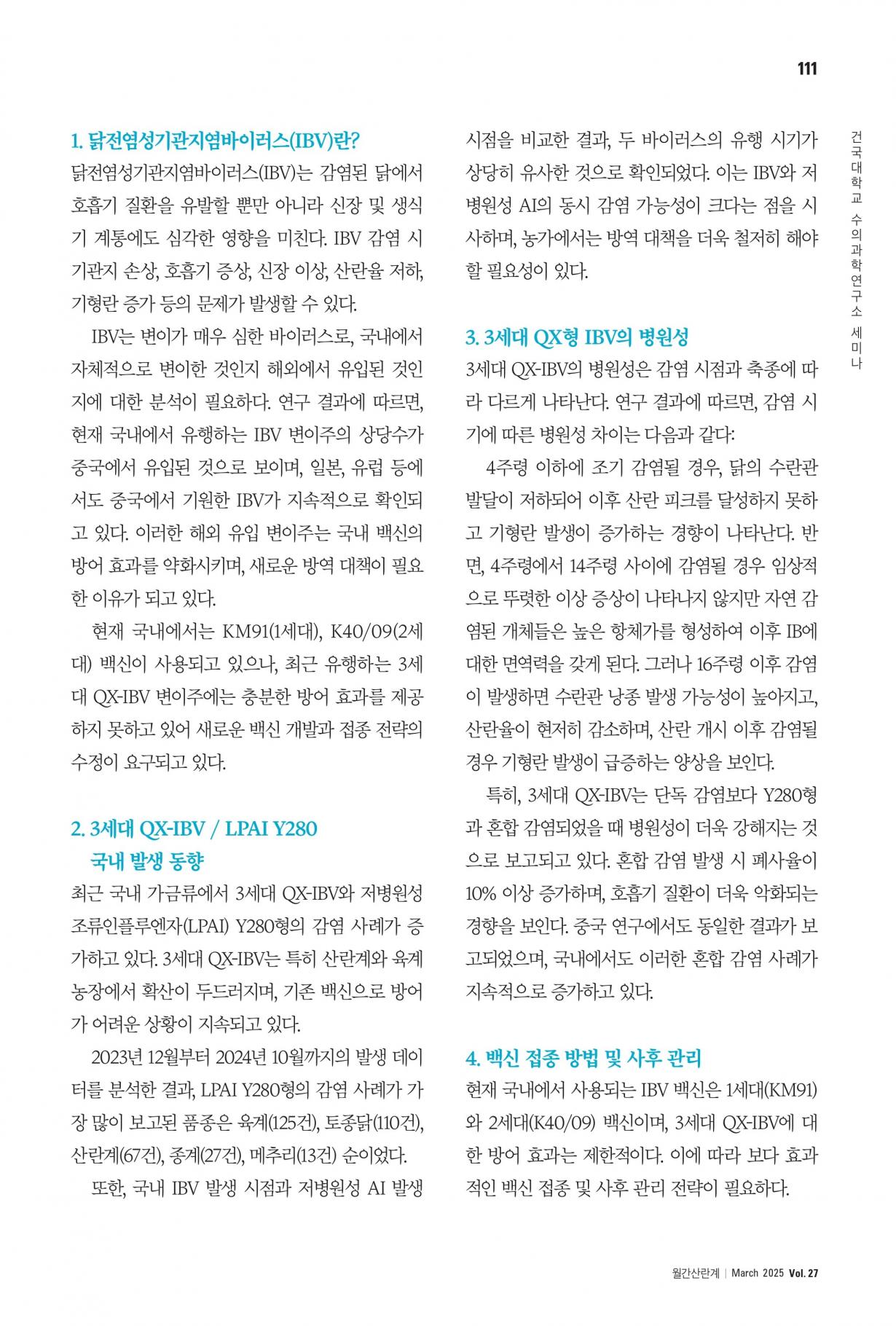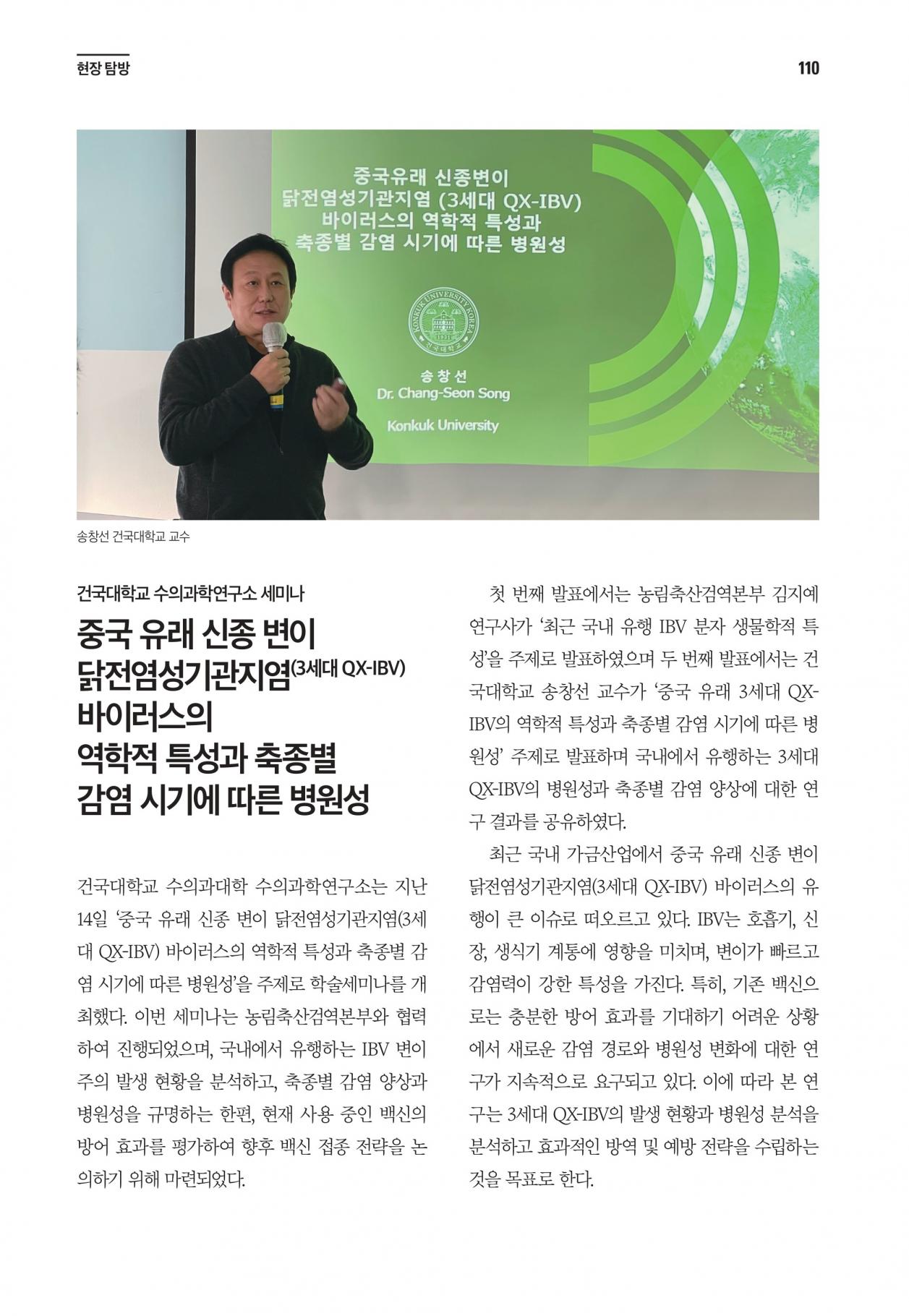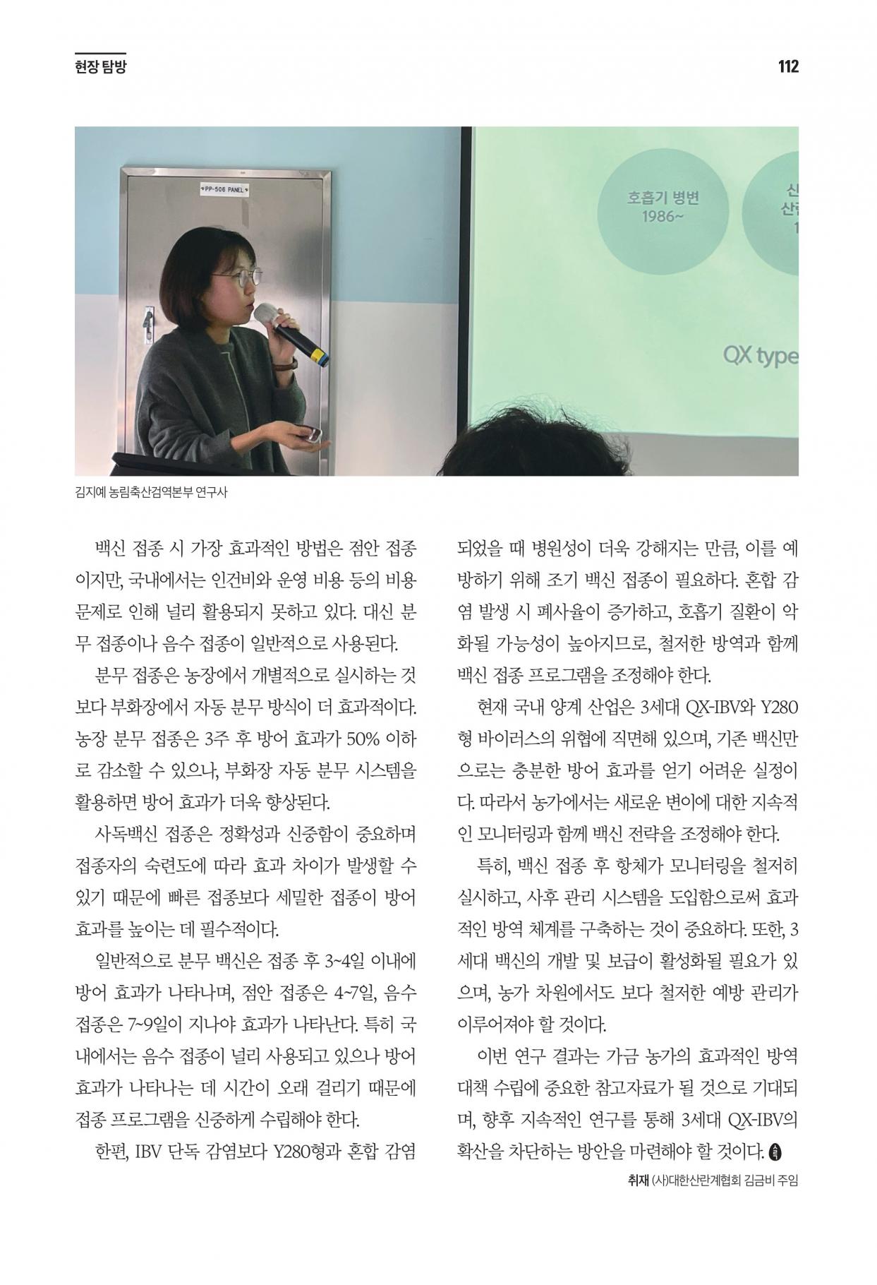[현장탐방] 중국 유래 신종 변이 닭전염성기관지염 바이러스의 역학적 특성과 축종별 감염 시기에 따른 병원성
