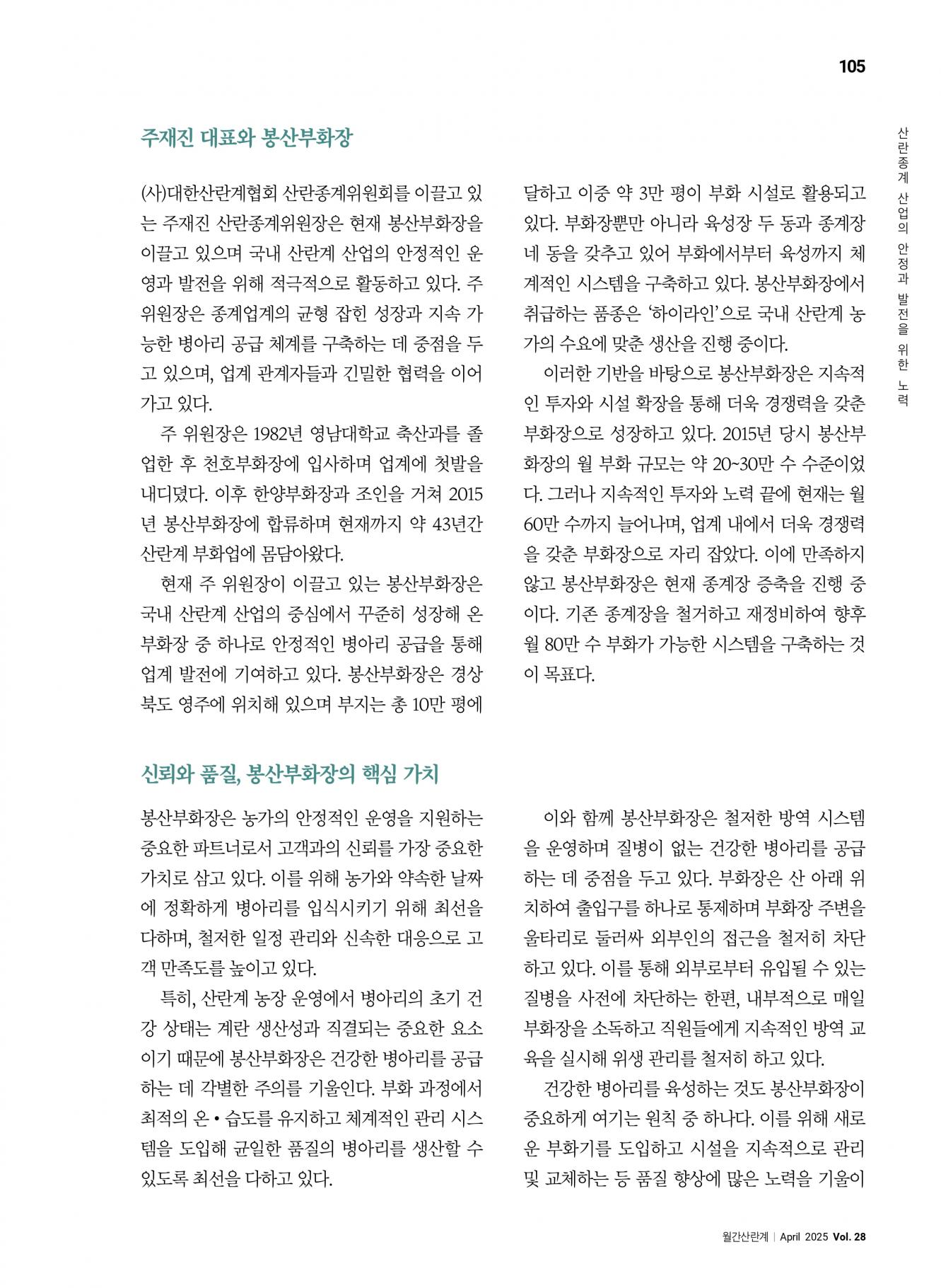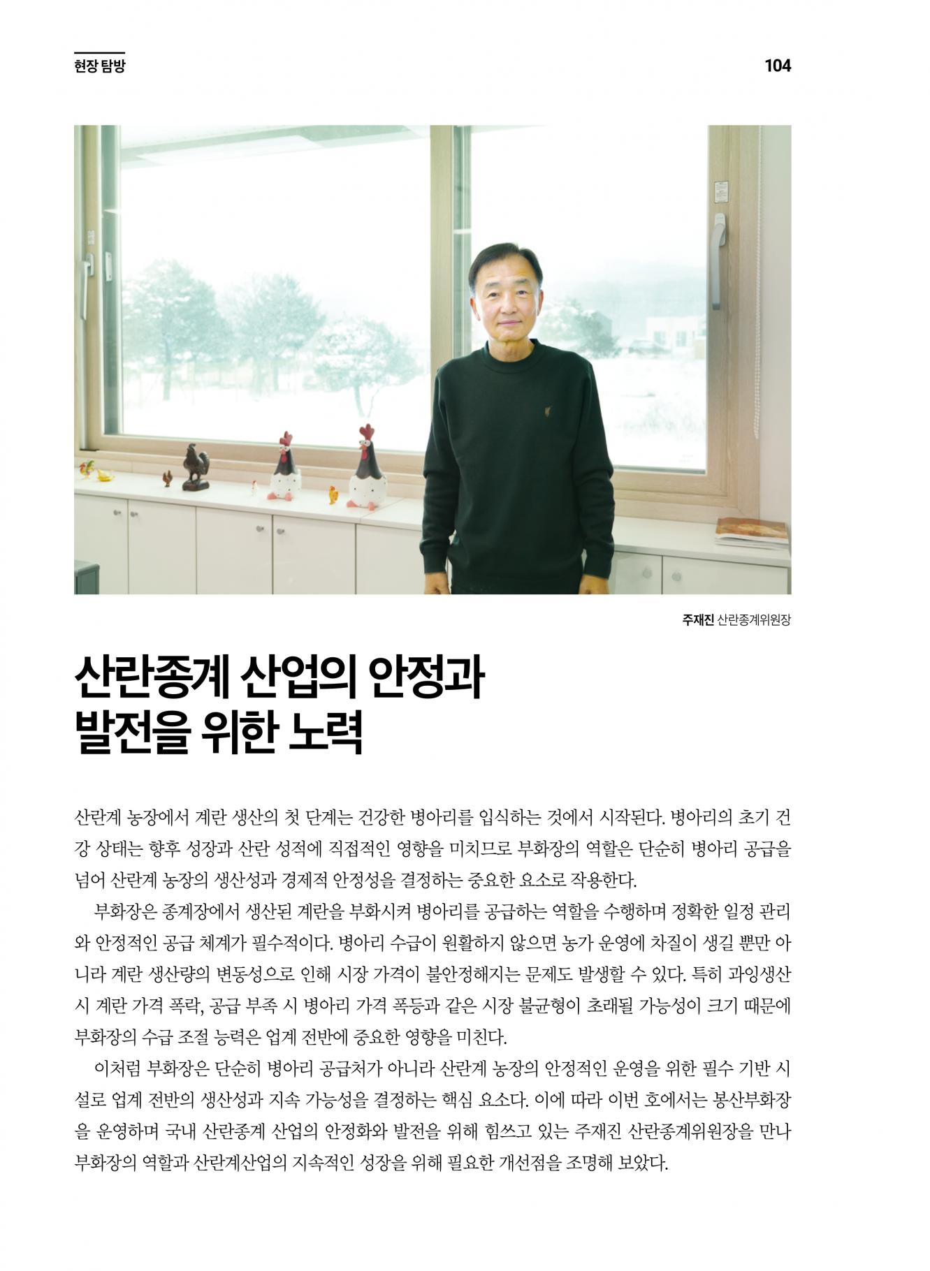 [인물탐방] 산란종계 산업의 안정과 발전을 위한 노력_주재진 산란종계위원장
