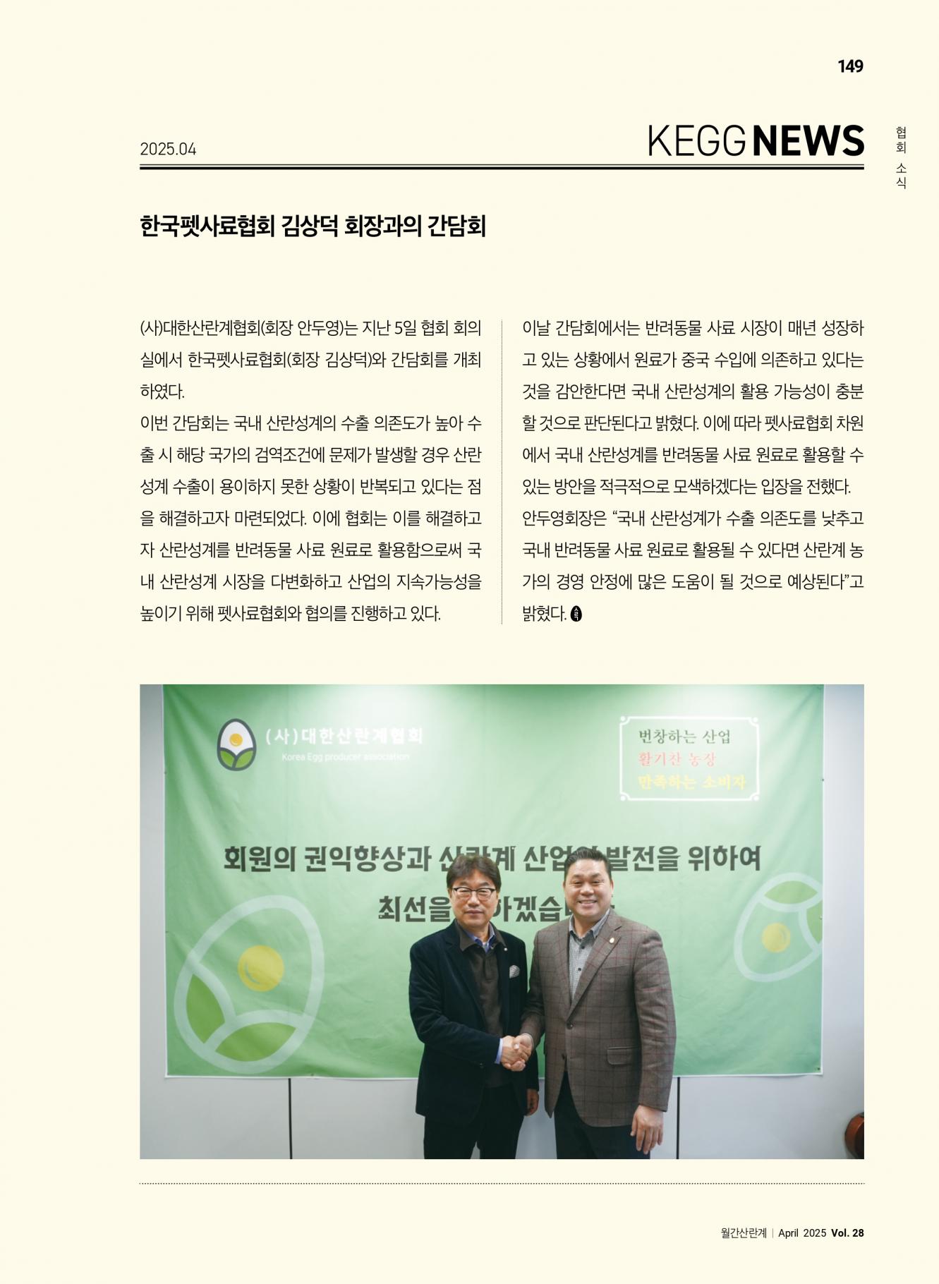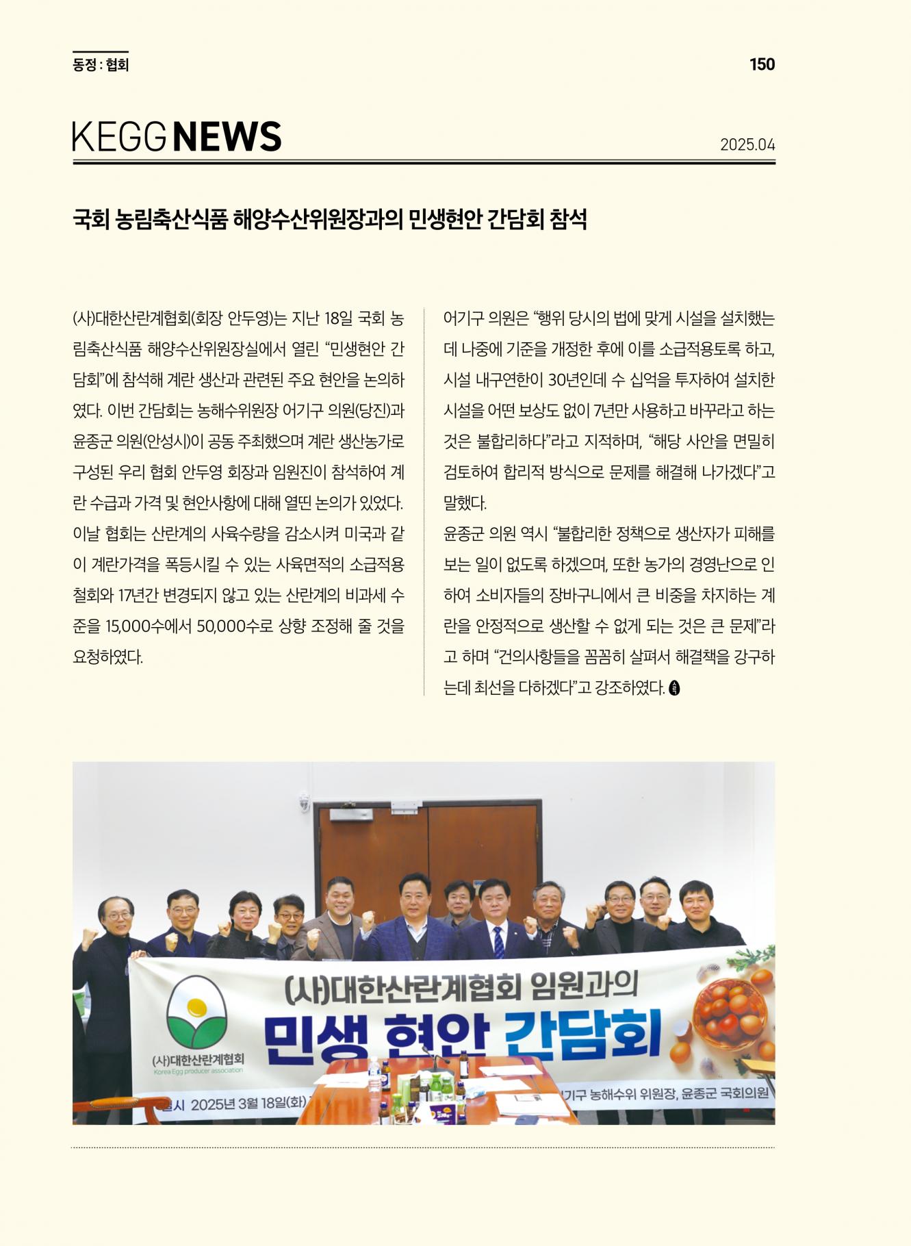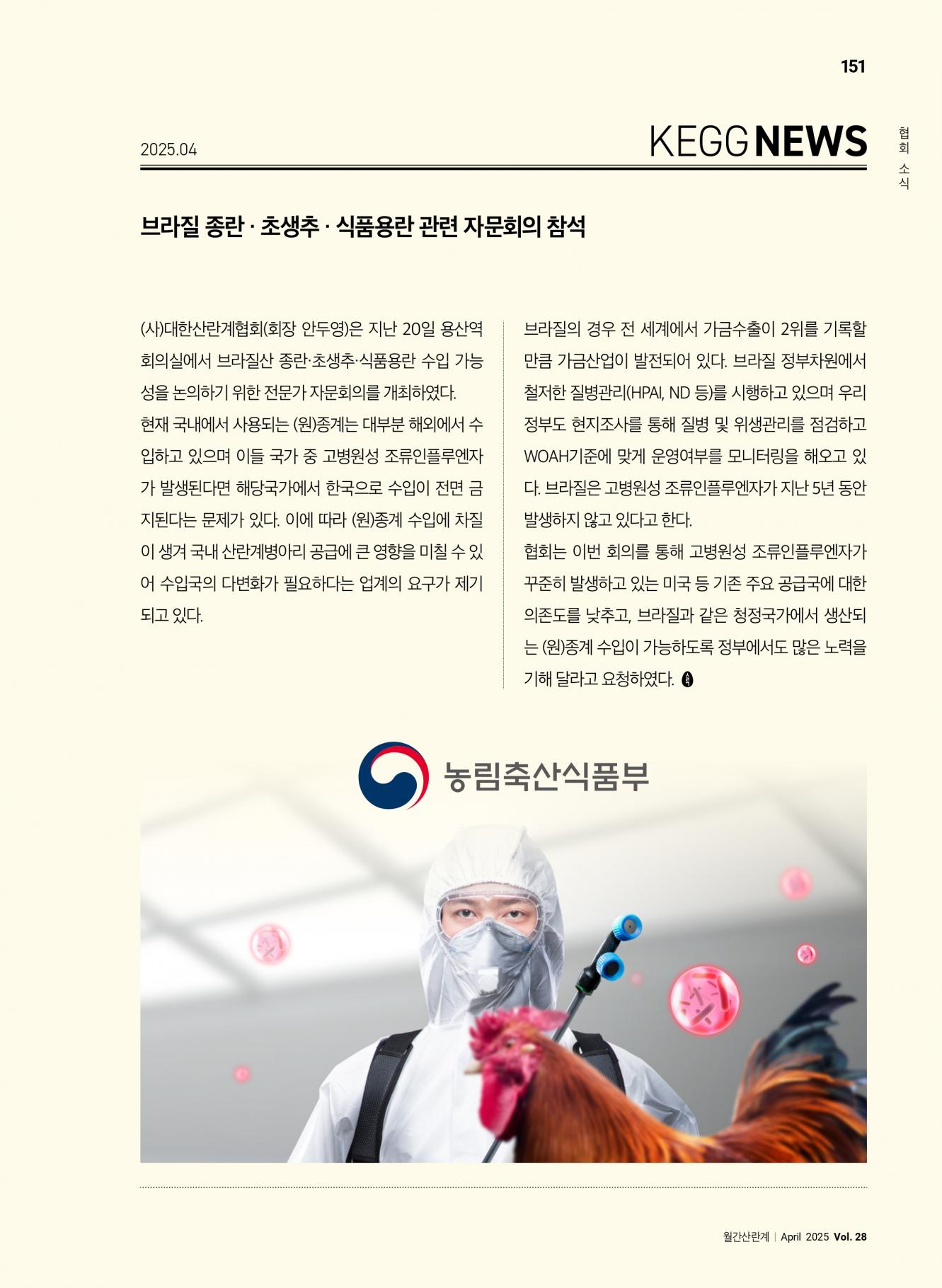 대한산란계협회 홈페이지 회원에게 무차별적으로 보내지는 메일을 차단하기 위해, 본 웹사이트에 게시된 이메일 주소가 전자우편 수집 프로그램이나 그 밖의 기술적 장치를 이용하여 무단으로 수집되는 것을 거부하며, 이를 위반시 정보통신망법에 의해 형사처벌됨을 유념하시기 바랍니다.