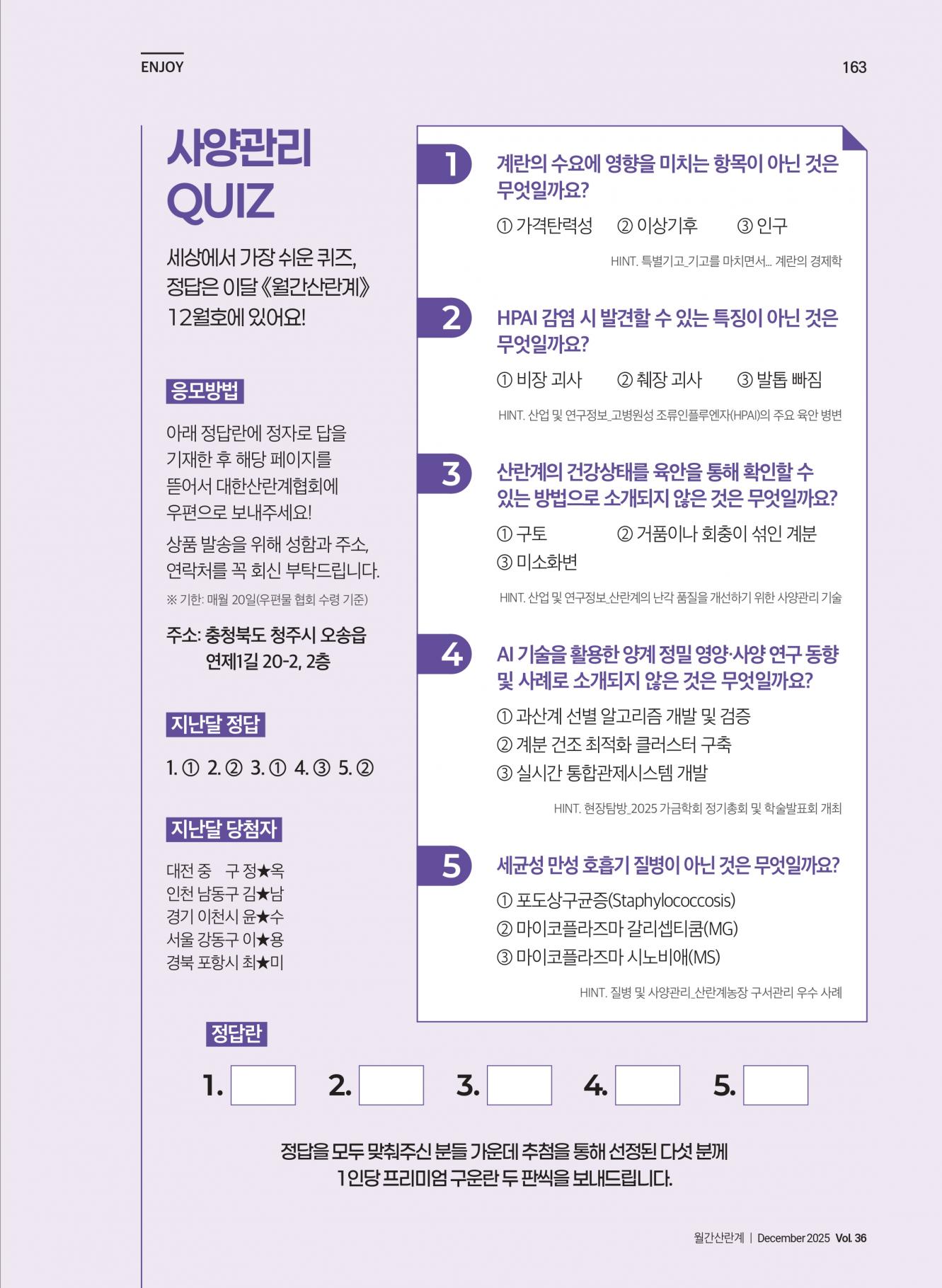 대한산란계협회 홈페이지 회원에게 무차별적으로 보내지는 메일을 차단하기 위해, 본 웹사이트에 게시된 이메일 주소가 전자우편 수집 프로그램이나 그 밖의 기술적 장치를 이용하여 무단으로 수집되는 것을 거부하며, 이를 위반시 정보통신망법에 의해 형사처벌됨을 유념하시기 바랍니다.