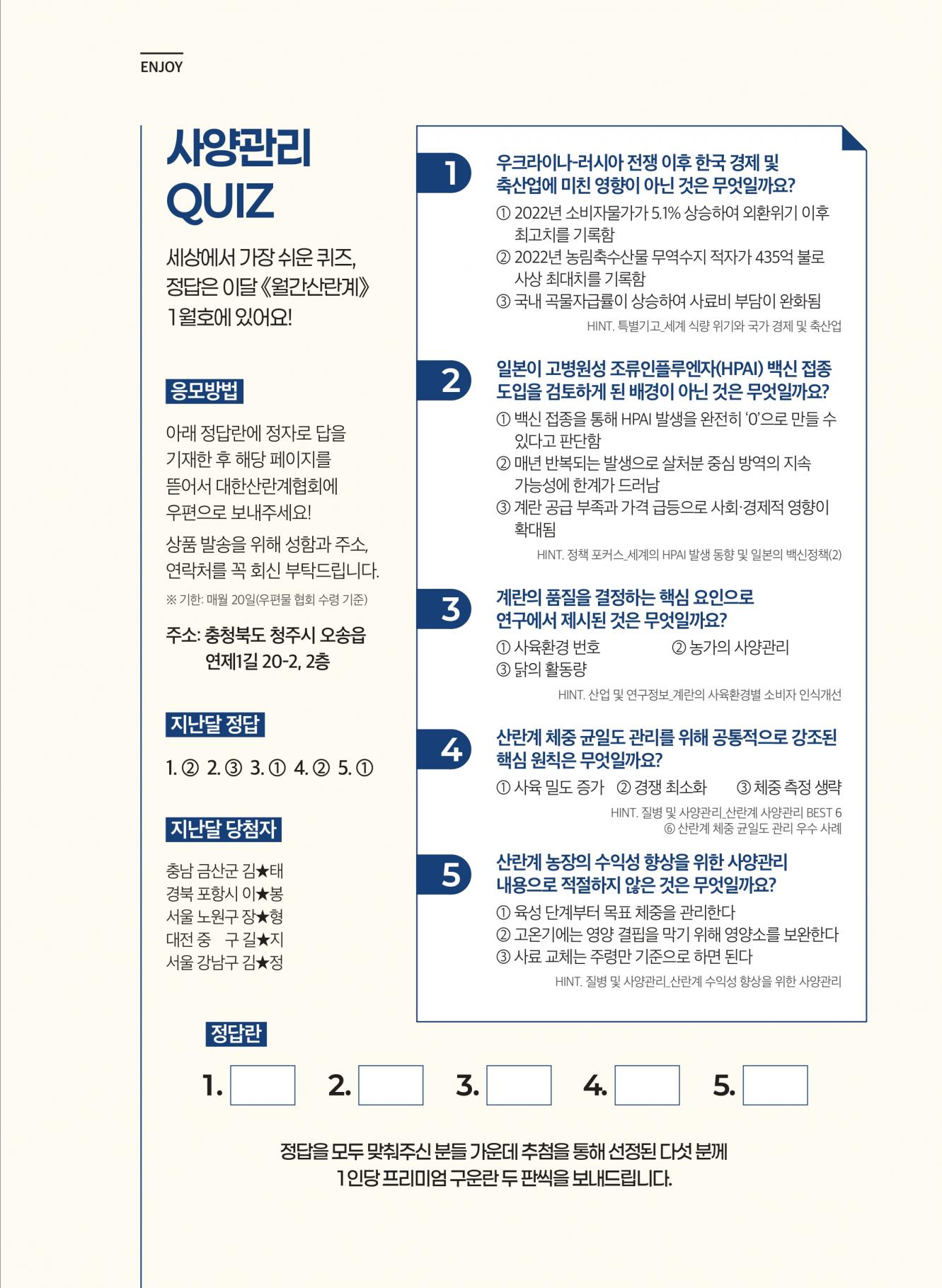 대한산란계협회 홈페이지 회원에게 무차별적으로 보내지는 메일을 차단하기 위해, 본 웹사이트에 게시된 이메일 주소가 전자우편 수집 프로그램이나 그 밖의 기술적 장치를 이용하여 무단으로 수집되는 것을 거부하며, 이를 위반시 정보통신망법에 의해 형사처벌됨을 유념하시기 바랍니다.