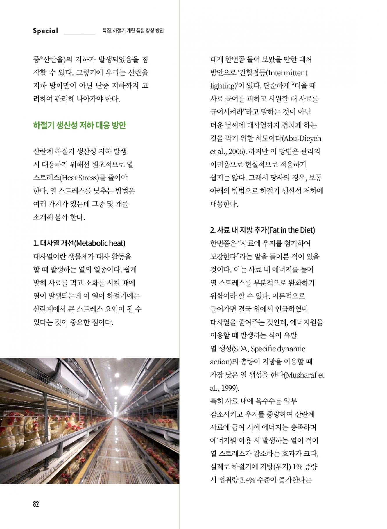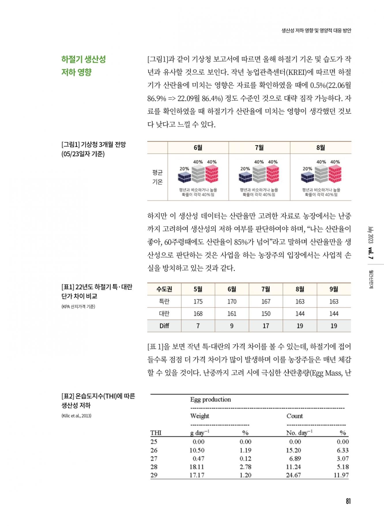 하절기 생산성 저하 영향 및 영양 및 영양적 대응 방안