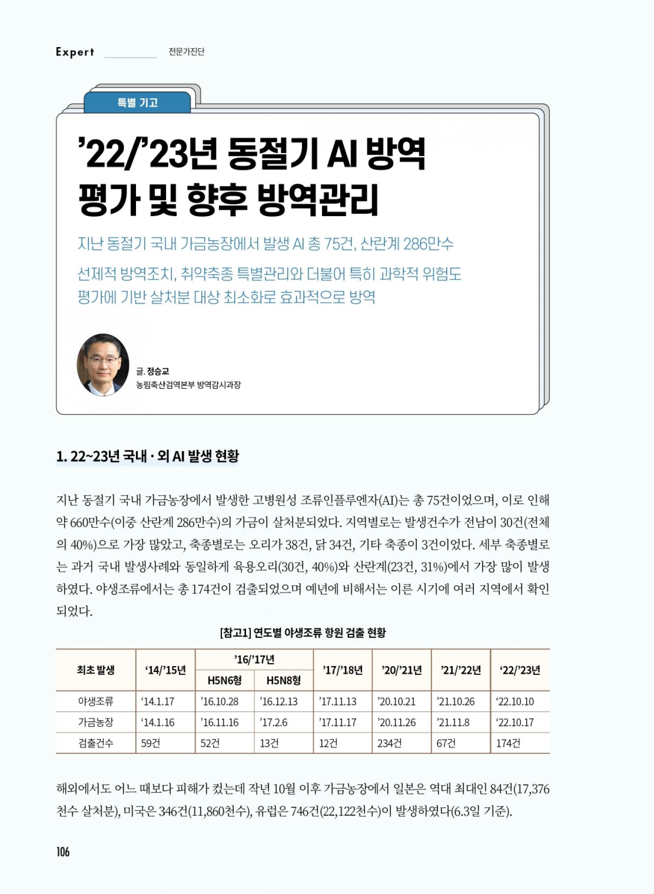 22/23년 동절기AI 방역 평가 및 향후 방역관리