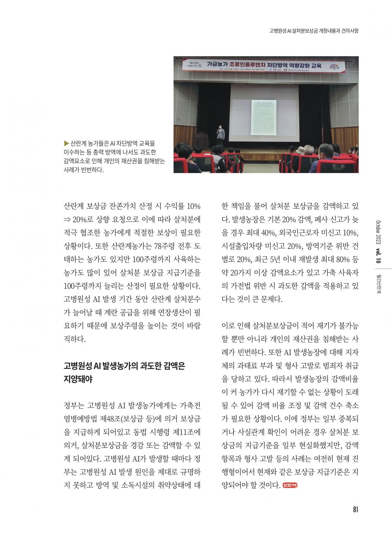 고병원성 AI 살처분보상금 개정내용과 건의사항