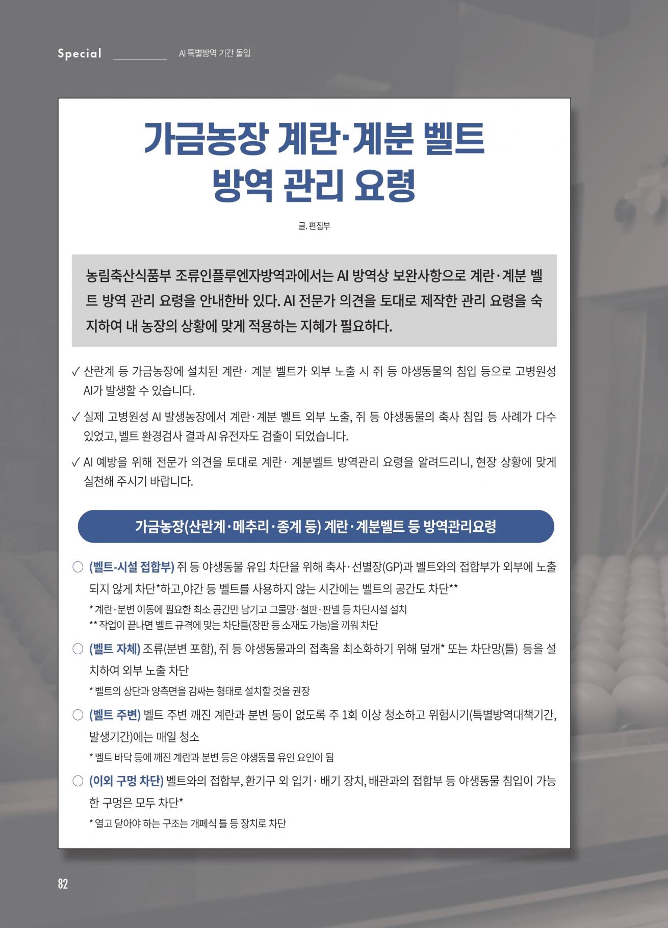 가금농장 계란, 계분 벨트 방역 관리 요령