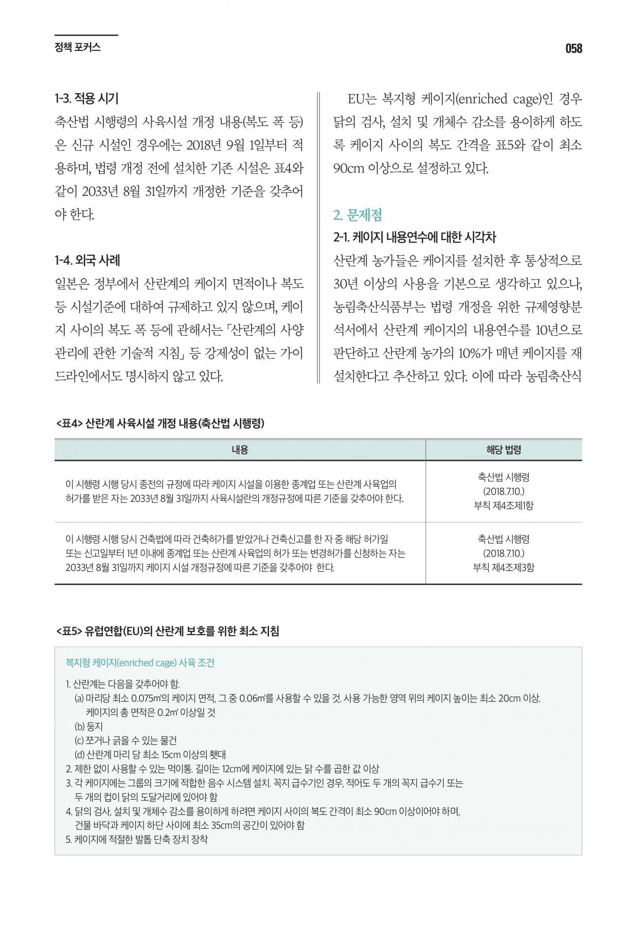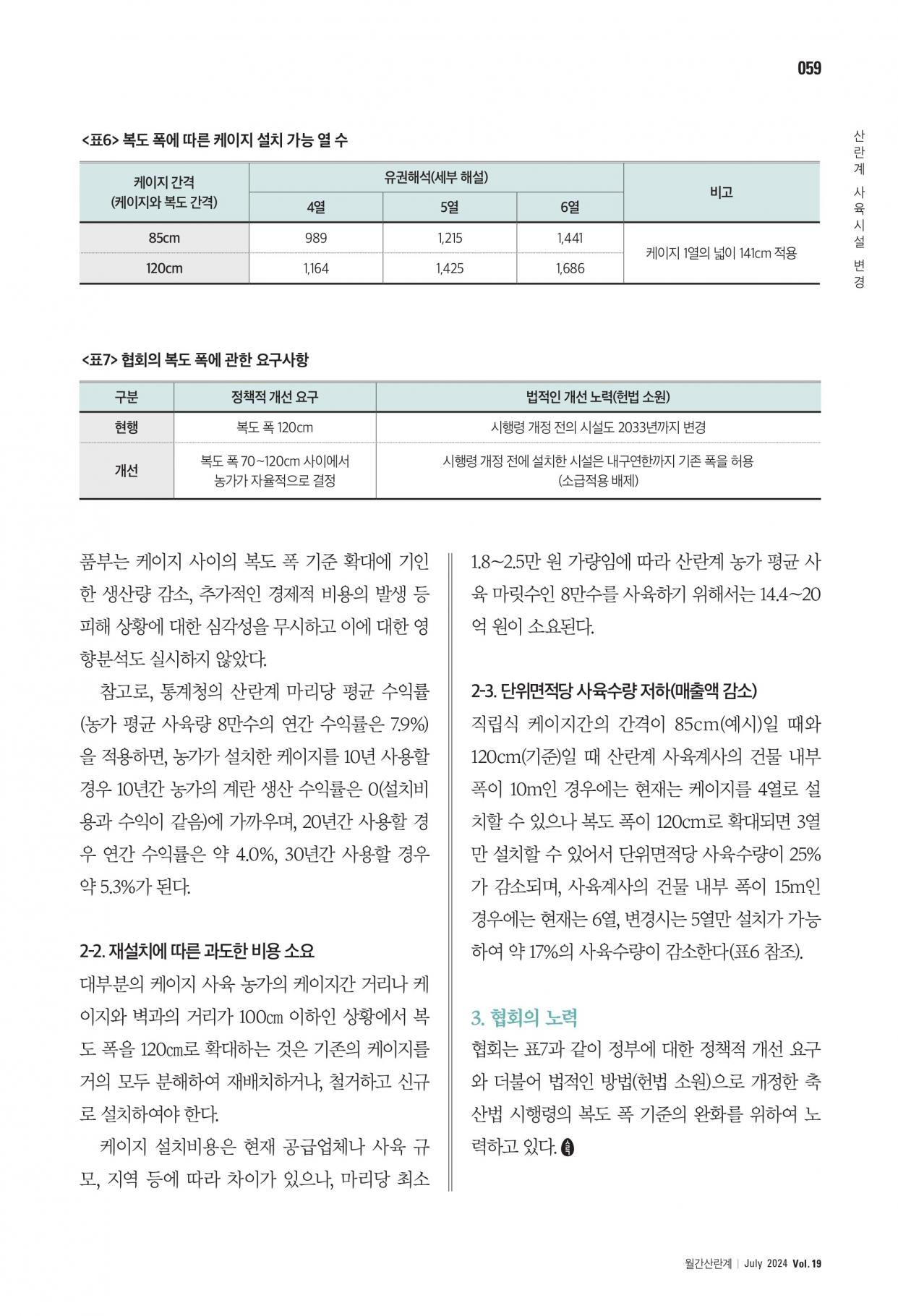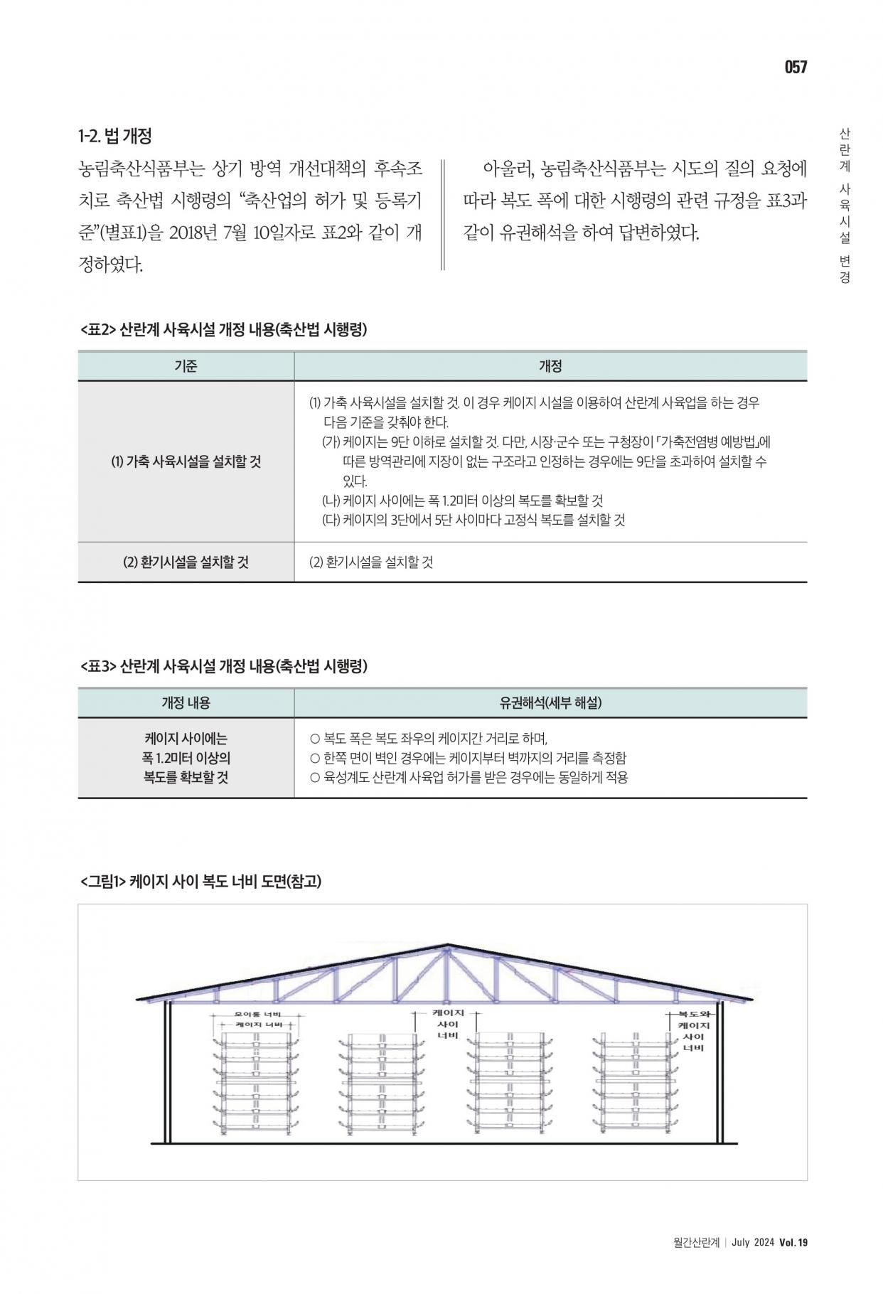 케이지 사이 복도 폭 등 산란계 사육시설 변경