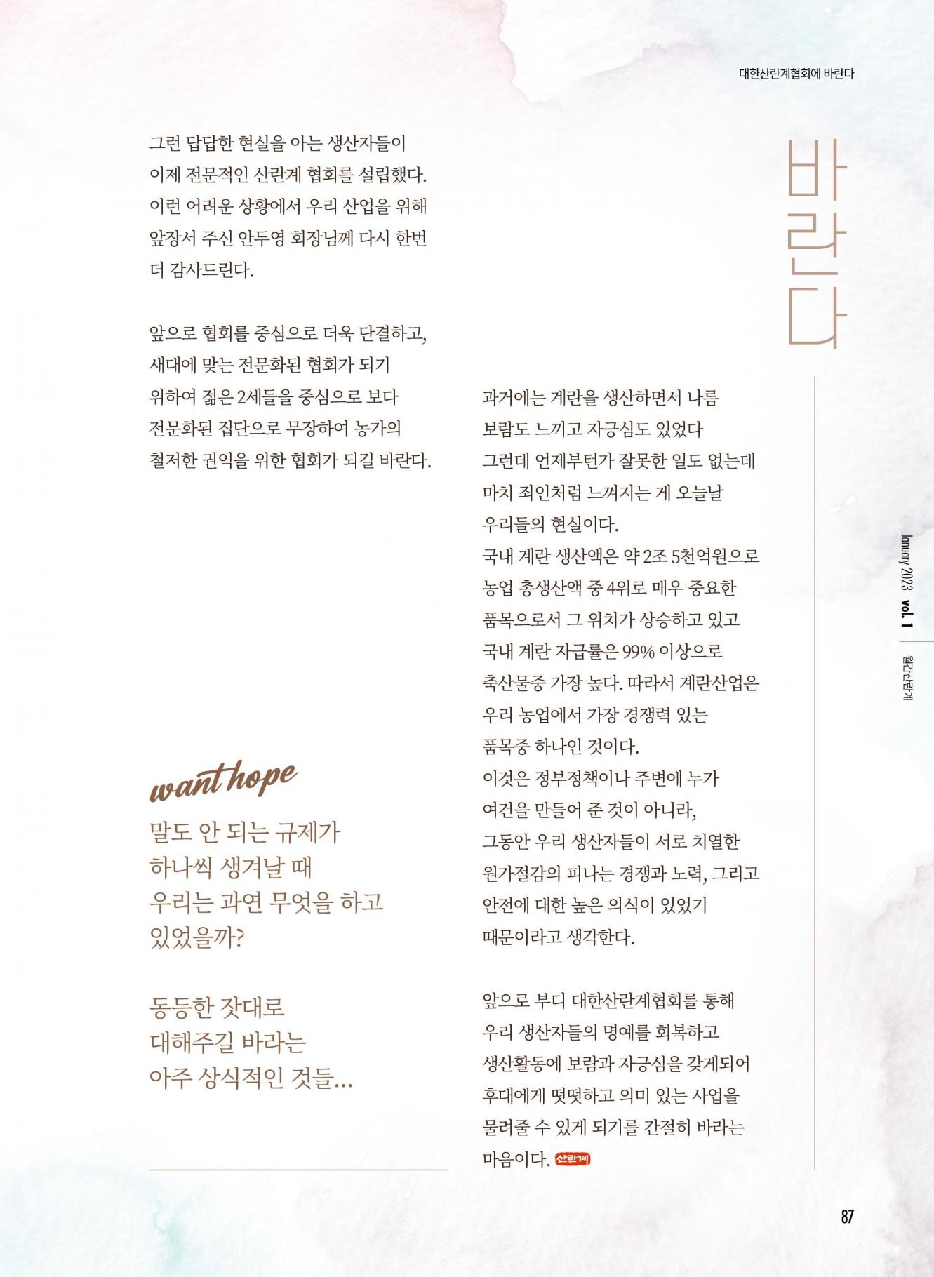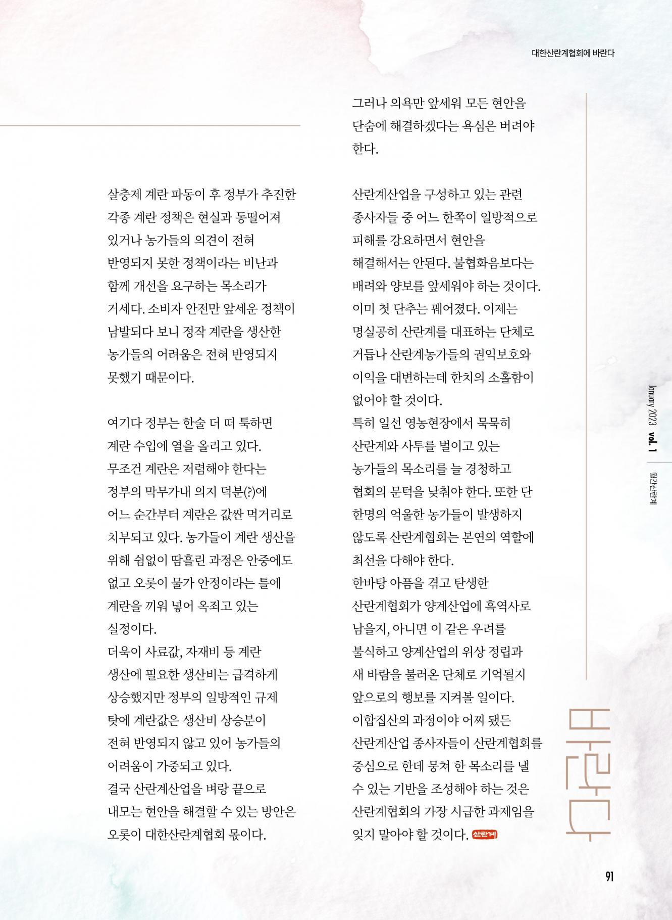 대한산란계협회에 바란다