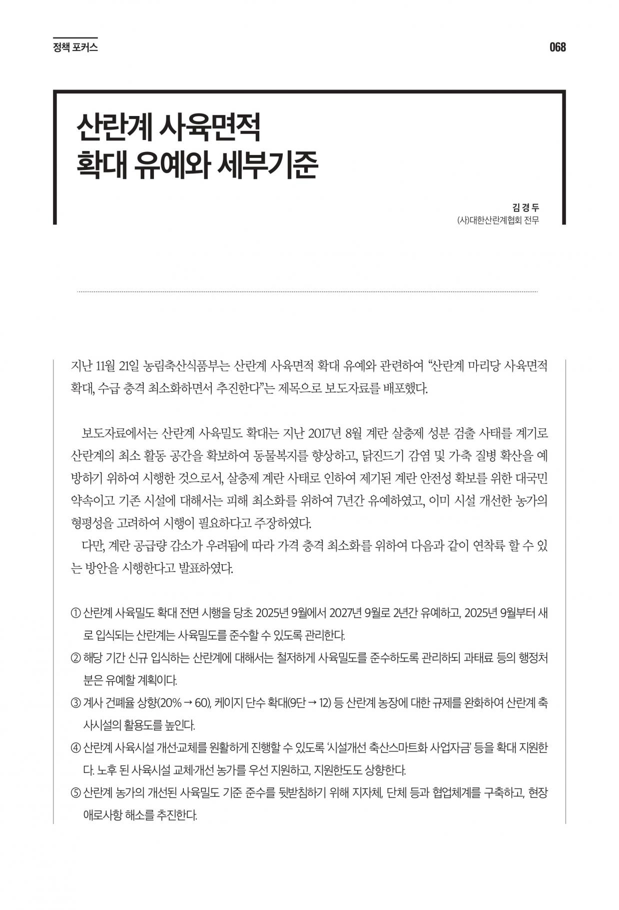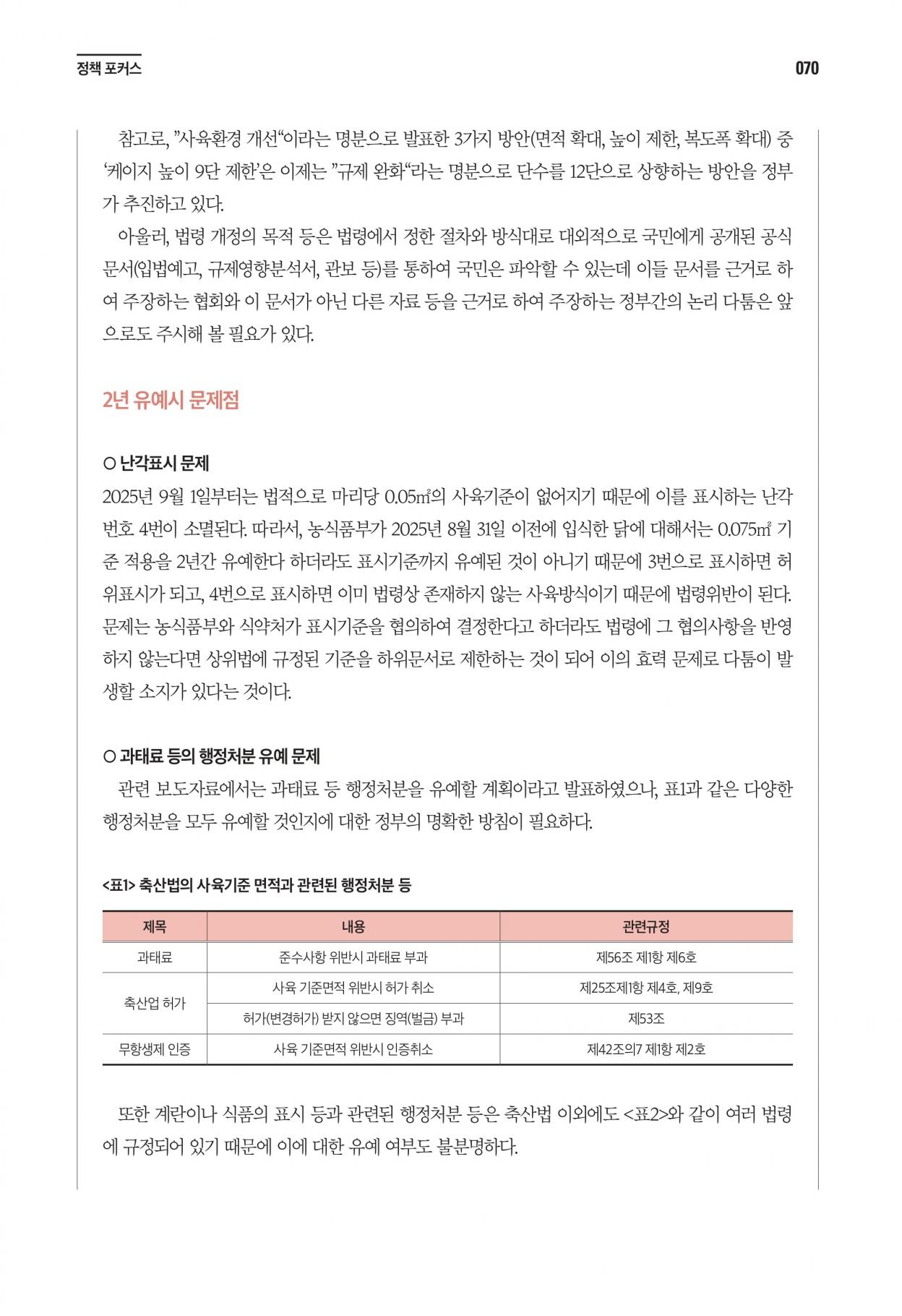 산란계 사육면적 확대 유예와 세부기준