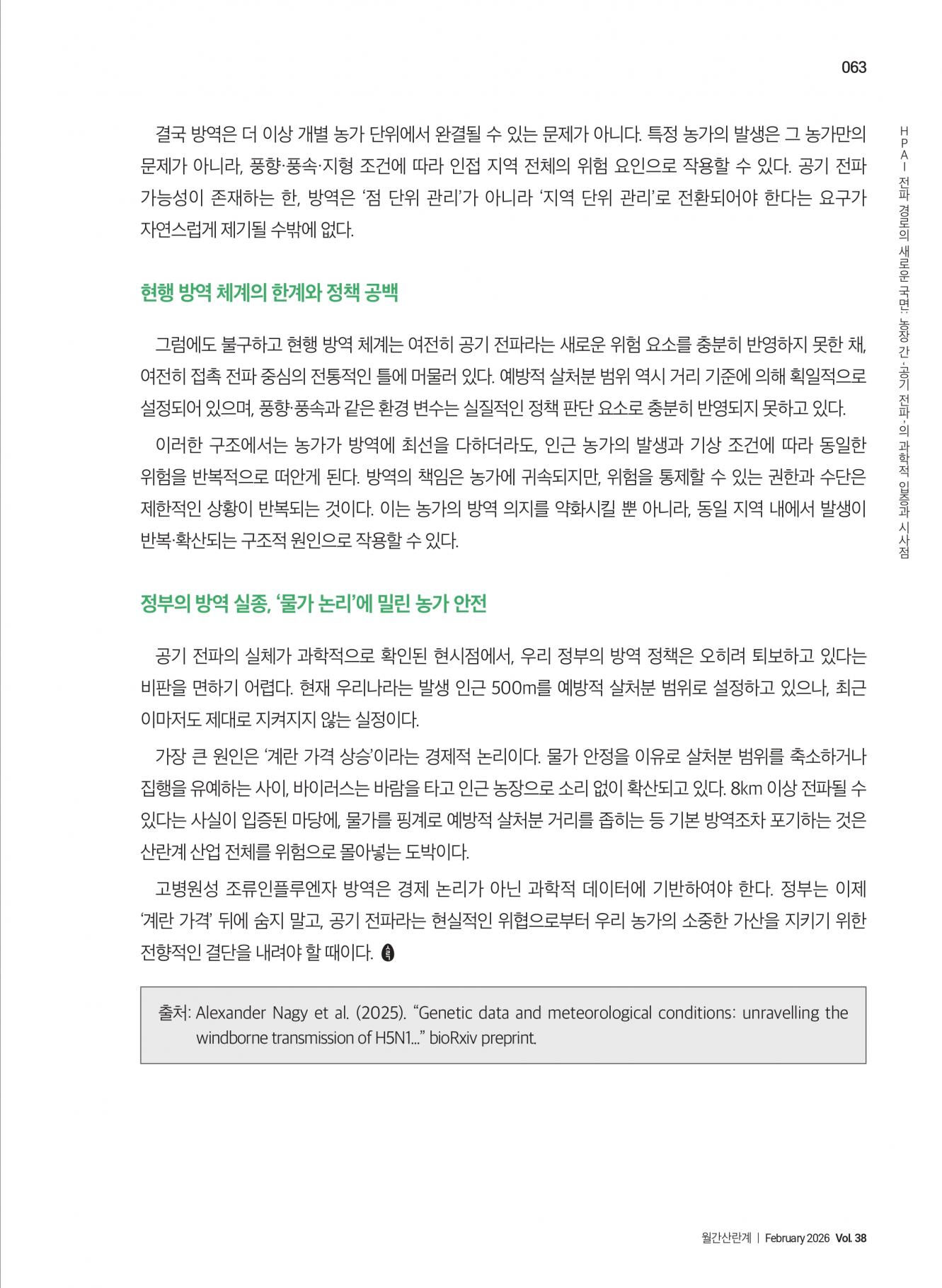 HPAI 전파 경로의 새로운 국면: 농장 간 '공기 전파'의 과학적 입증과 시사점